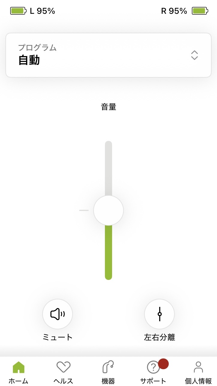 画面中央のバーで、補聴器の音を大きくor小さくできます。