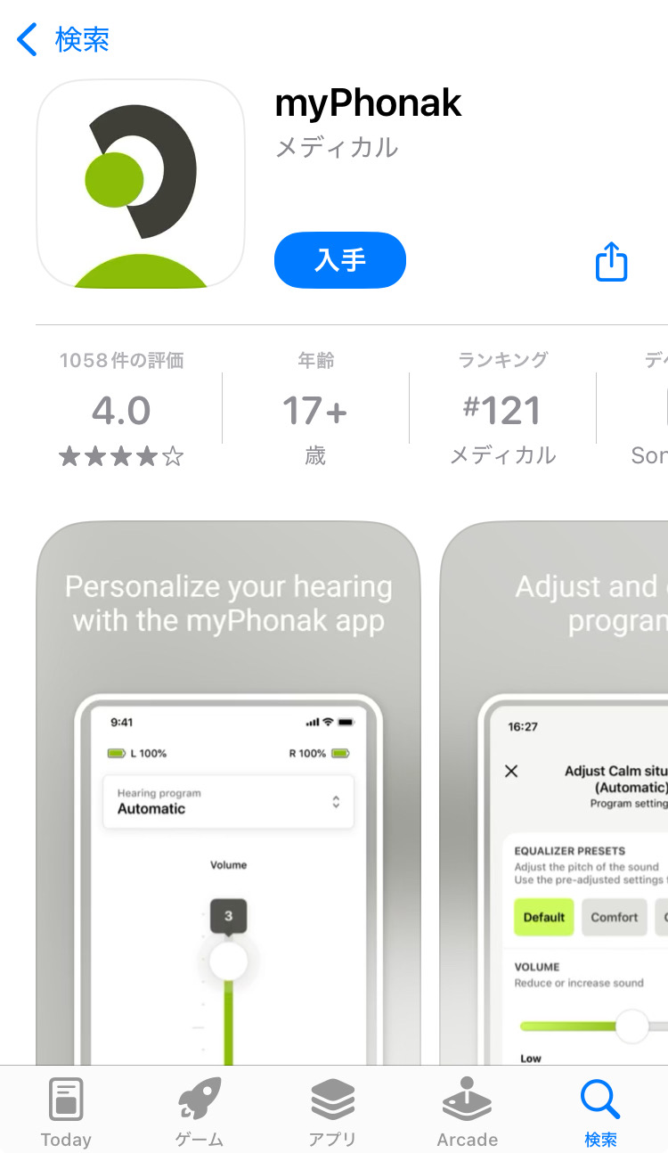 ・「App Store」から検索して、『myPhonak』をインストール
