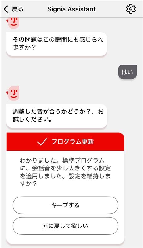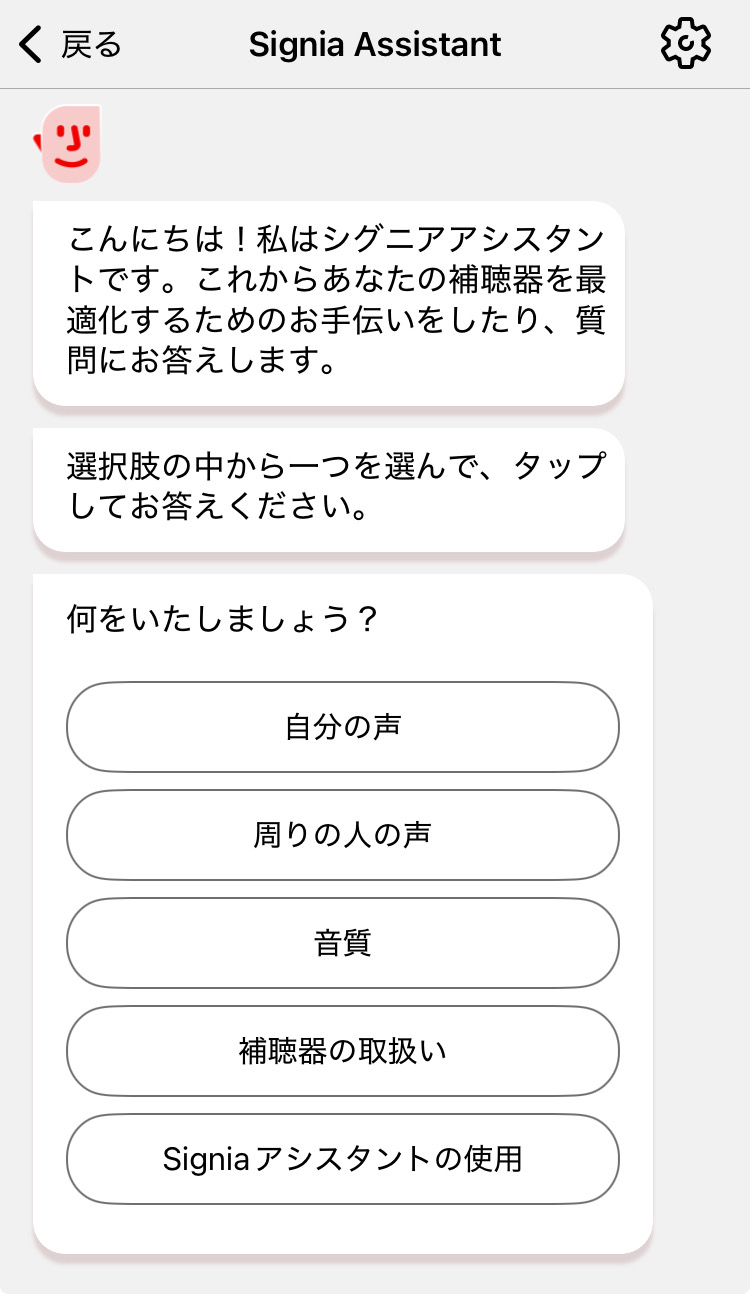 シグニアアプリには、「Signia assistant(シグニアアシスタント)」というAIとのチャット機能があります。