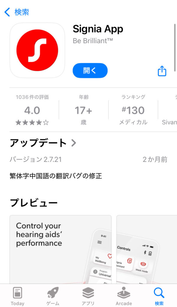 ・「App Store」から検索して、『Signia App』をインストール