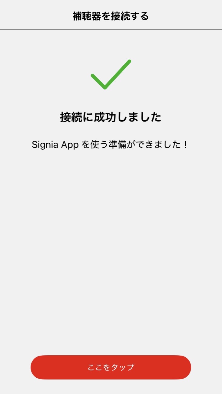 ・補聴器の電源を入れると自動で検出されるため、補聴器の名称部分をタップする。
